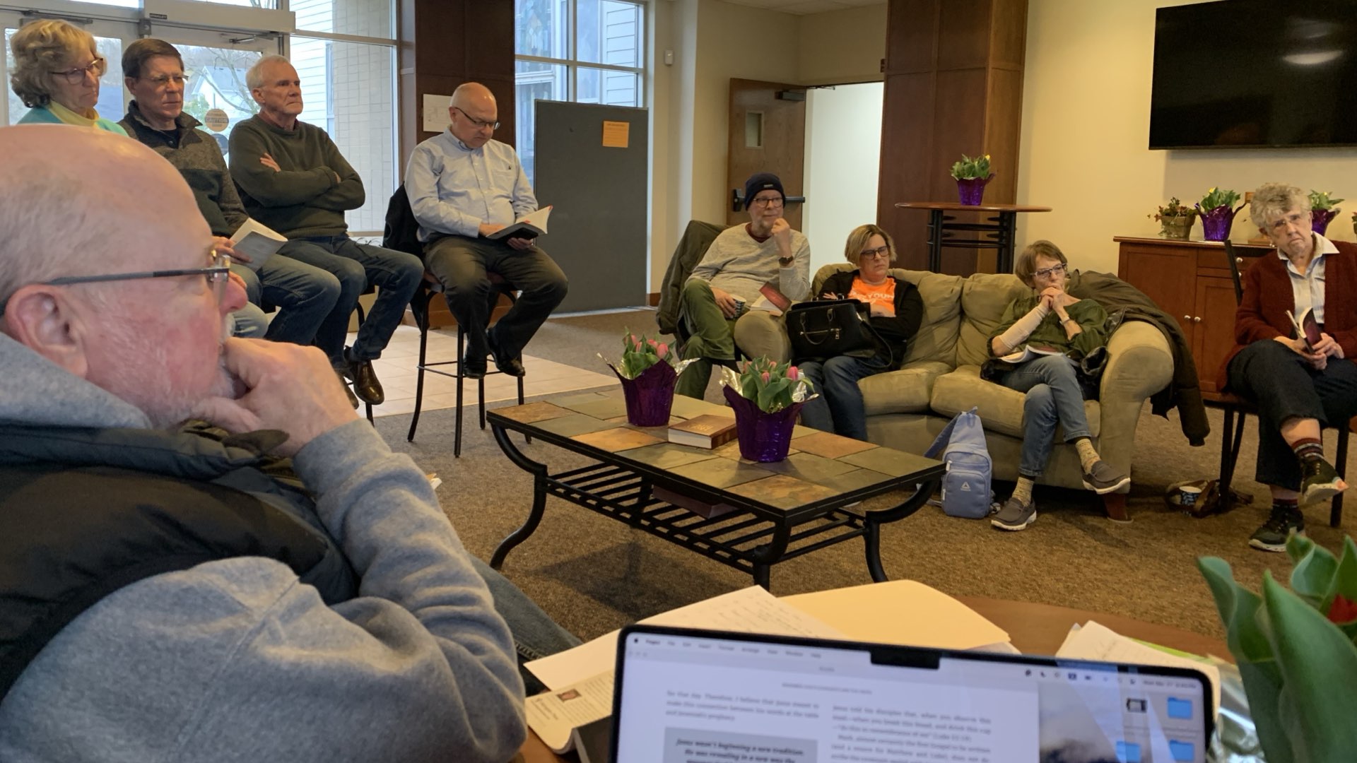 This Bible study gets its name from the beautiful stained glass windows where they meet. They meet on Sunday mornings at 10 am (between the first and second worship services) in the back half of the Fellowship Hall. They are studying Hebrews until March 1, where they will take a break for the Lent Bible Study and then start back up on April 12. The group will decide what to study in the fall. Facilitators: Jeff Birkhold and Lynn Zimmerman